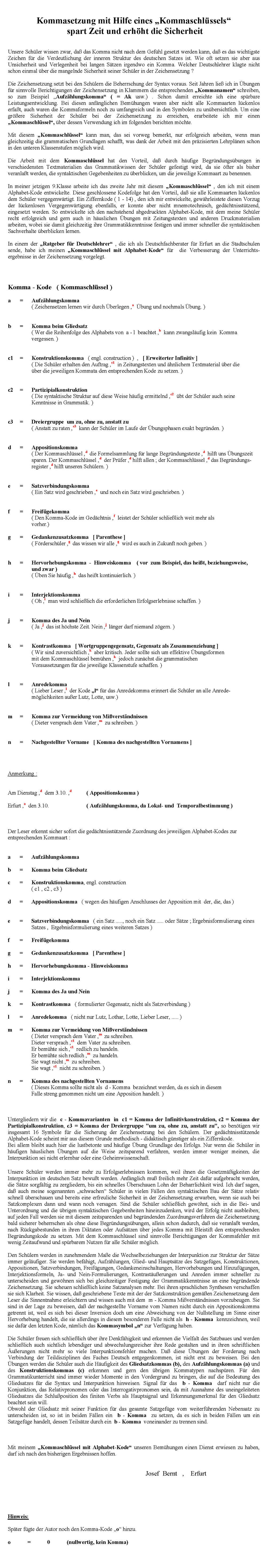 Josef Bernt war sein legendärer Kommaschlüssel, eine Eigenentwicklung zur Verbesserung unserer Fähigkeiten in der Zeichensetzung bei schriftlichen Arbeiten. Von den Schülern damals meist belächelt,