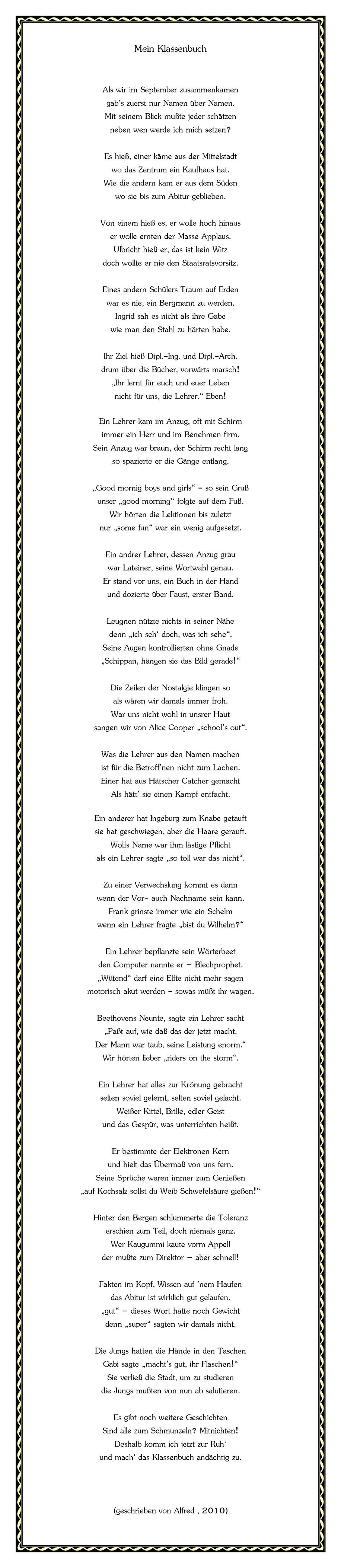 Das folgende Gedicht über unsere gemeinsame Schulzeit wurde von Alfred anläßlich unseres